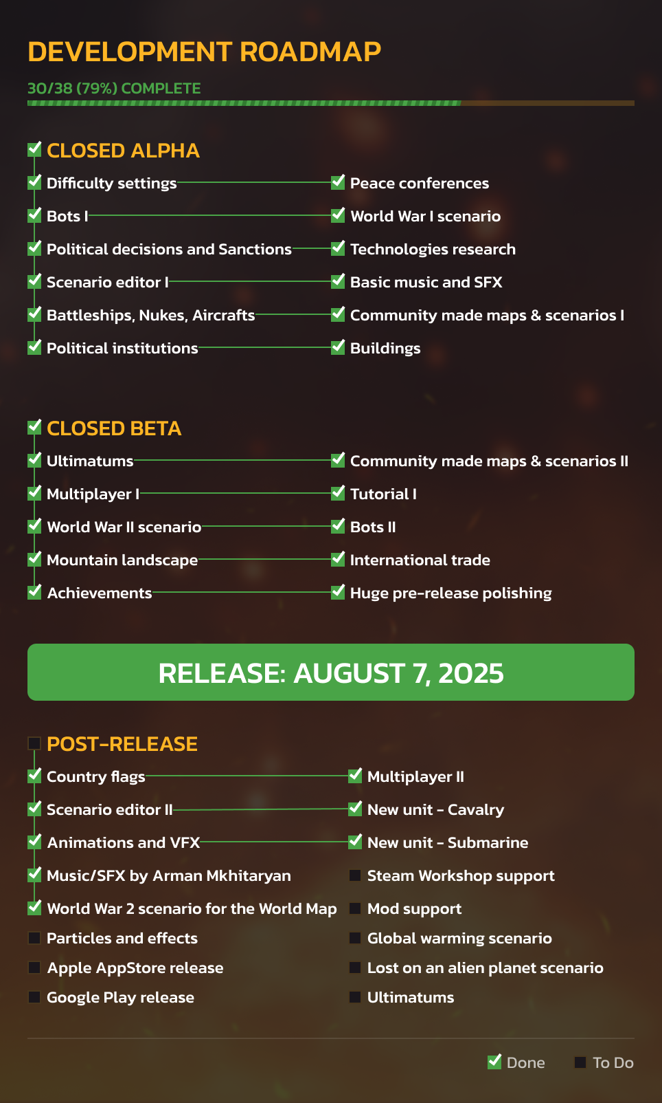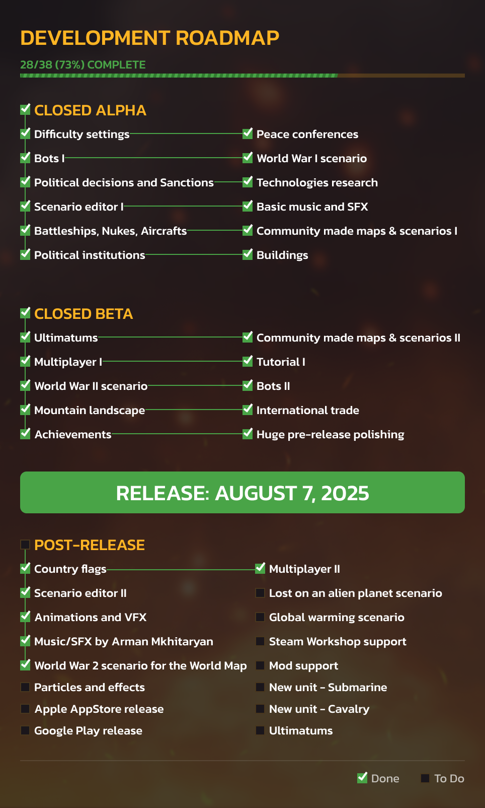- Access to Warnament for Windows, macOS, Linux. Map and Scenario Editors are also included. New update every 1-2 weeks 🚀!